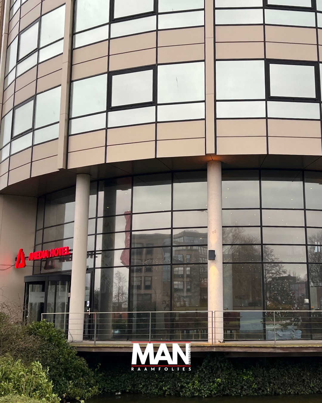Bij het Amedia hotel te Amsterdam Schiphol hebben wij de ruiten voorzien van een warmtewerende glasfolie.