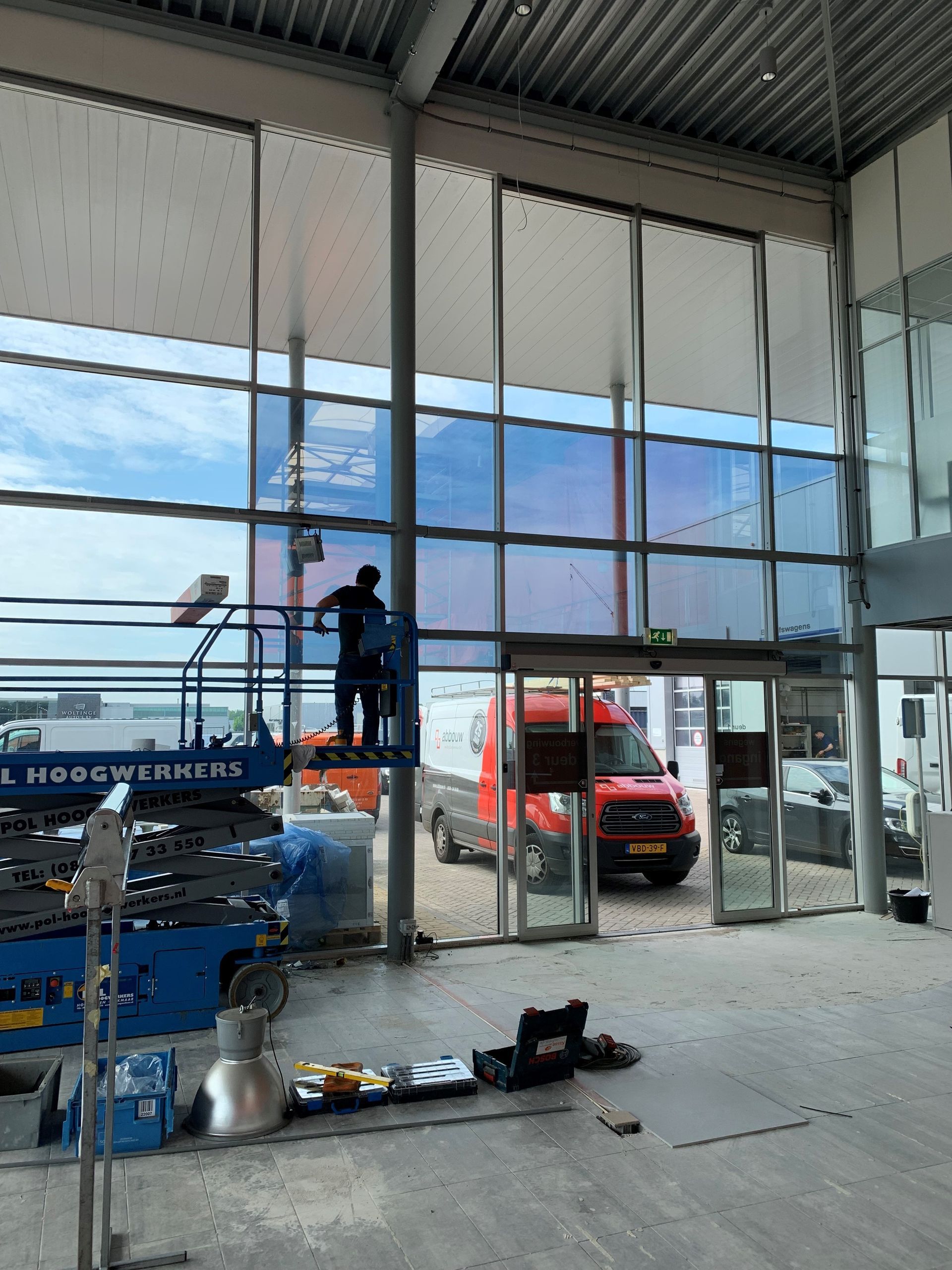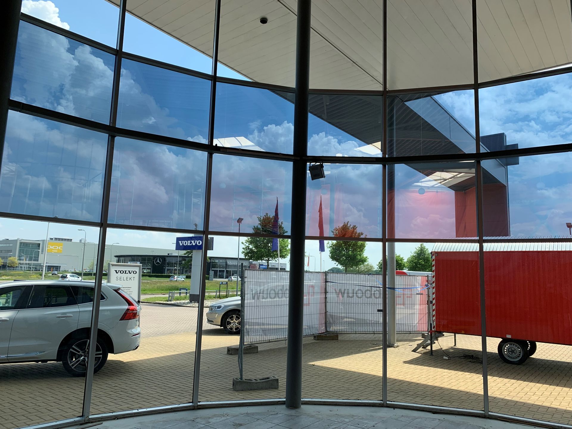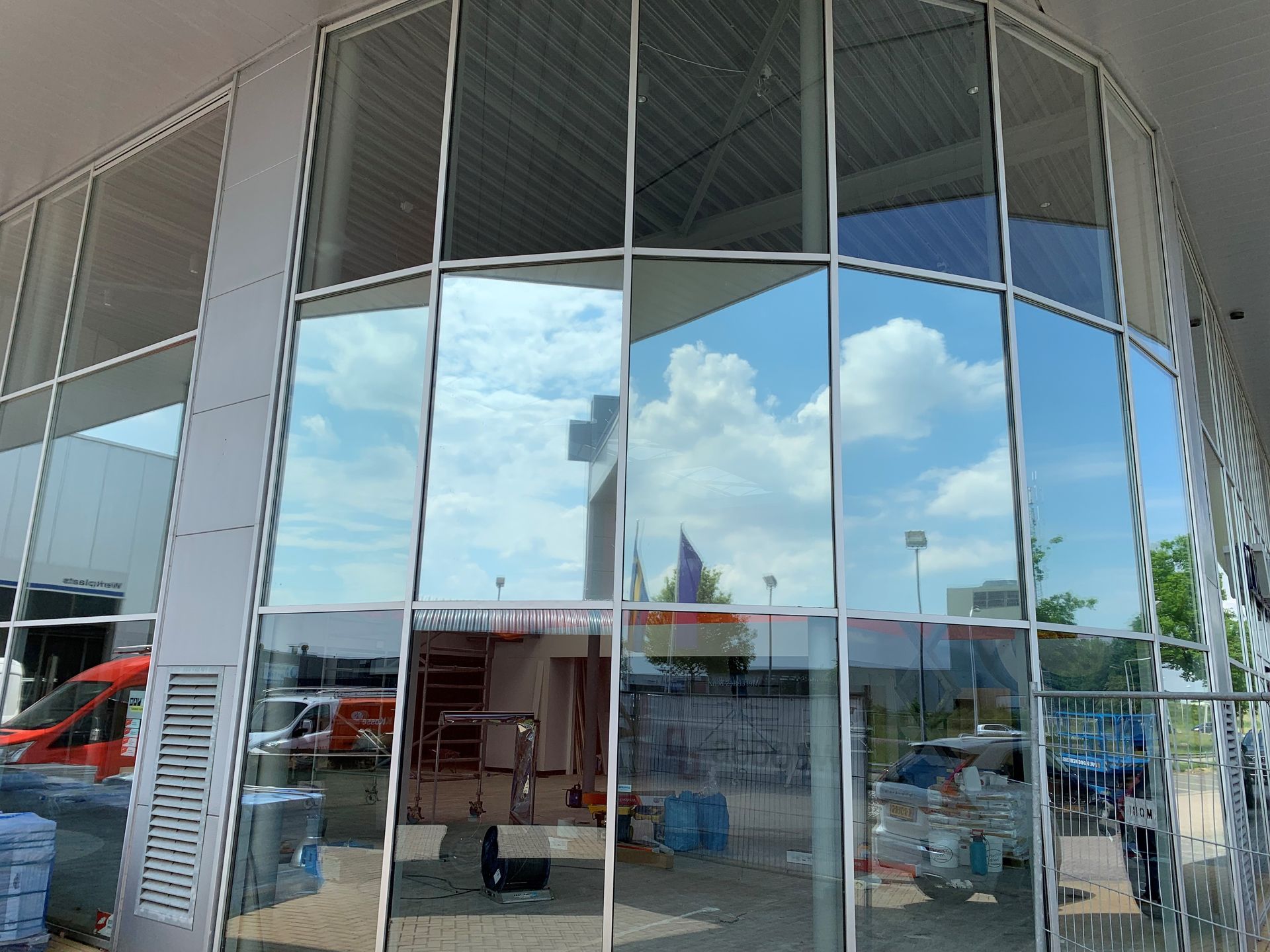 Via één van onze vaste relaties hebben wij de opdracht gekregen om bij een autodealer te Hoogeveen de ruiten van de glazen pui te voorzien van een warmtewerende glasfolie.