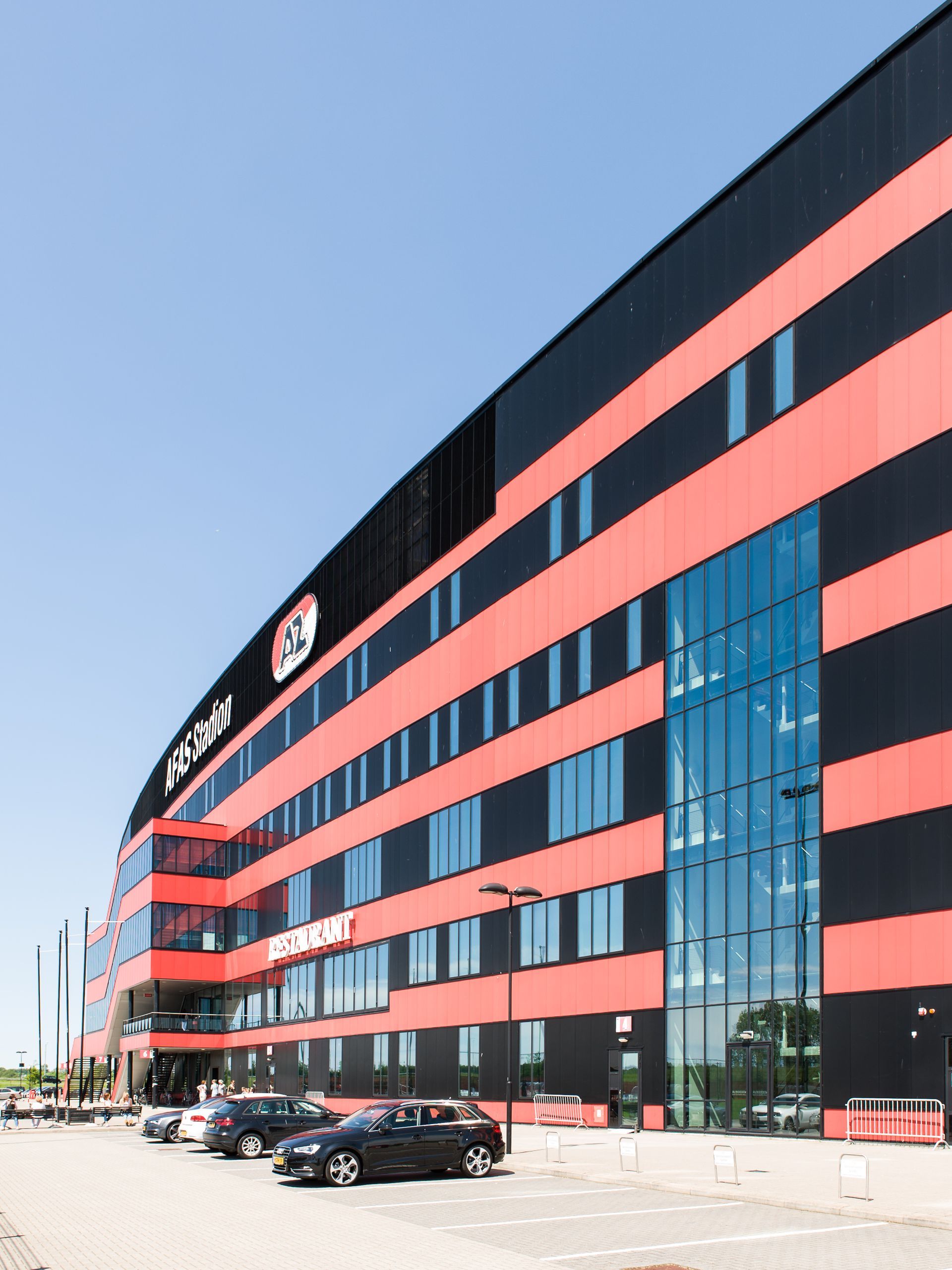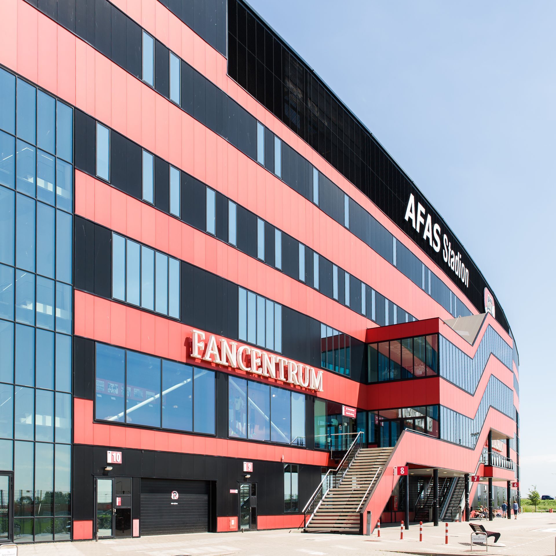 Bij het AZ Stadion te Alkmaar hebben wij een zeer licht getinte warmtewerende raamfolie geplaatst aan de binnenzijde van het glas in de trappenhuizen. Op last van de brandweer moest de doorkijk in de trappenhuizen behouden blijven.