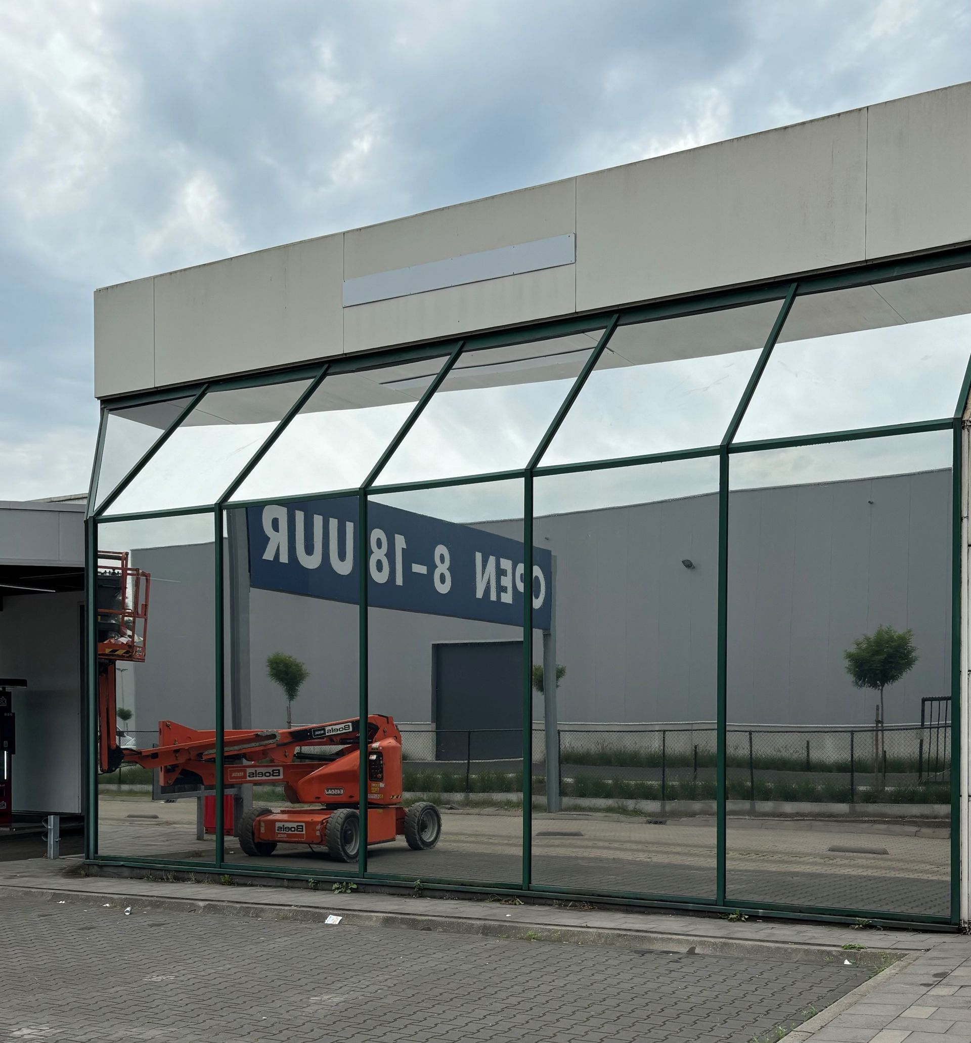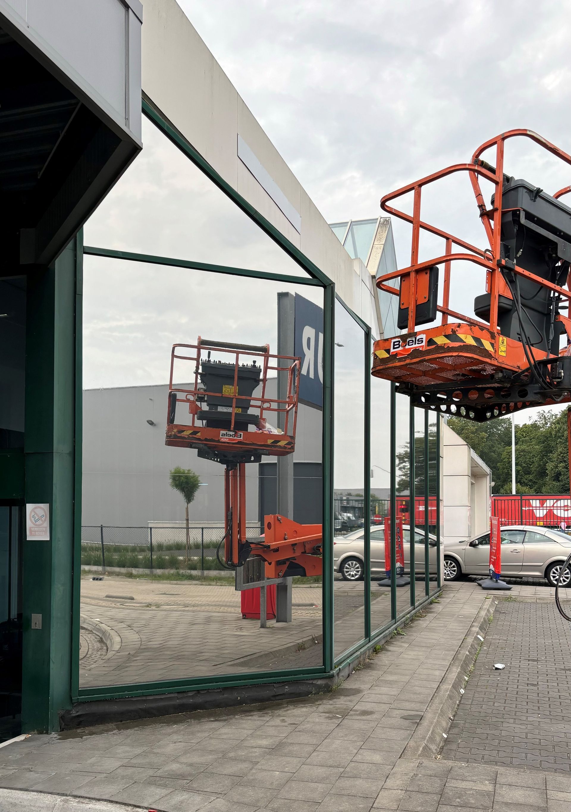 Via Van Duinen Reclame hebben wij bij ANAC Carwash Wilrijk te Antwerpen aan de buitenzijde van de ruiten een licht- en warmtewerende glasfolie geplaatst.
