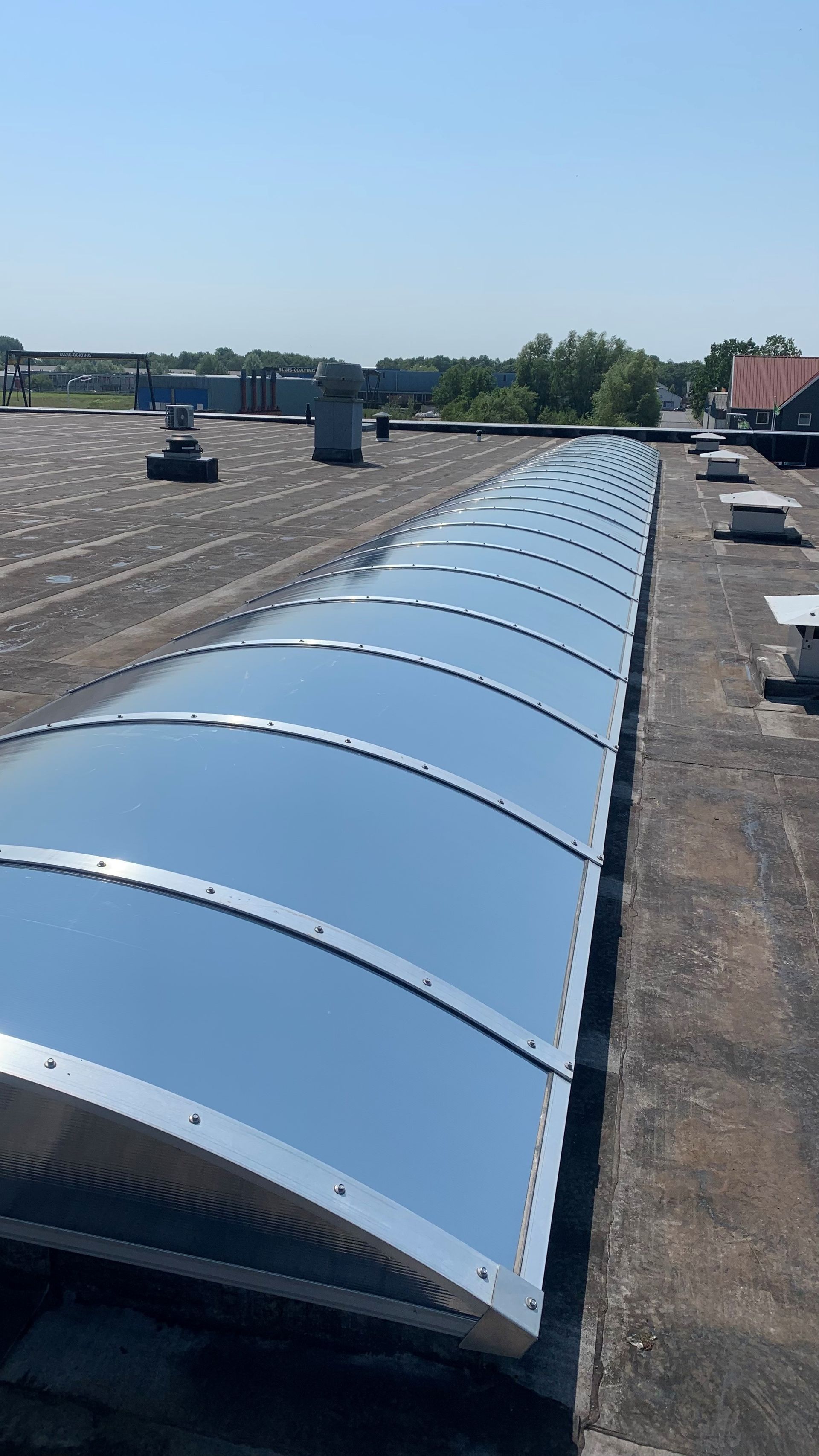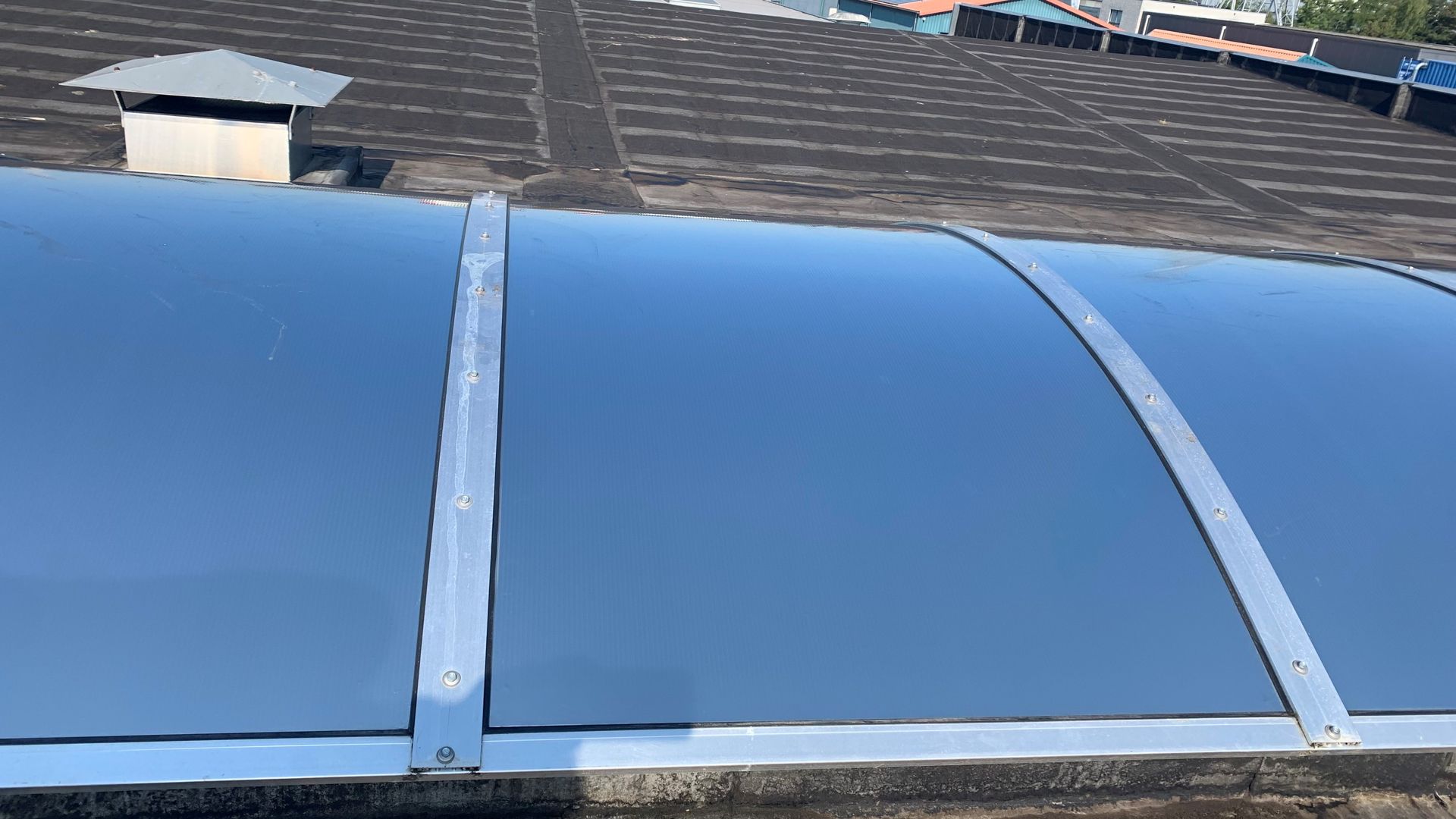 In opdracht van een van onze vaste opdrachtgevers hebben wij de kunststof ruiten van de dakkoepels bij Fleqs voorzien van een warmtewerende folie.