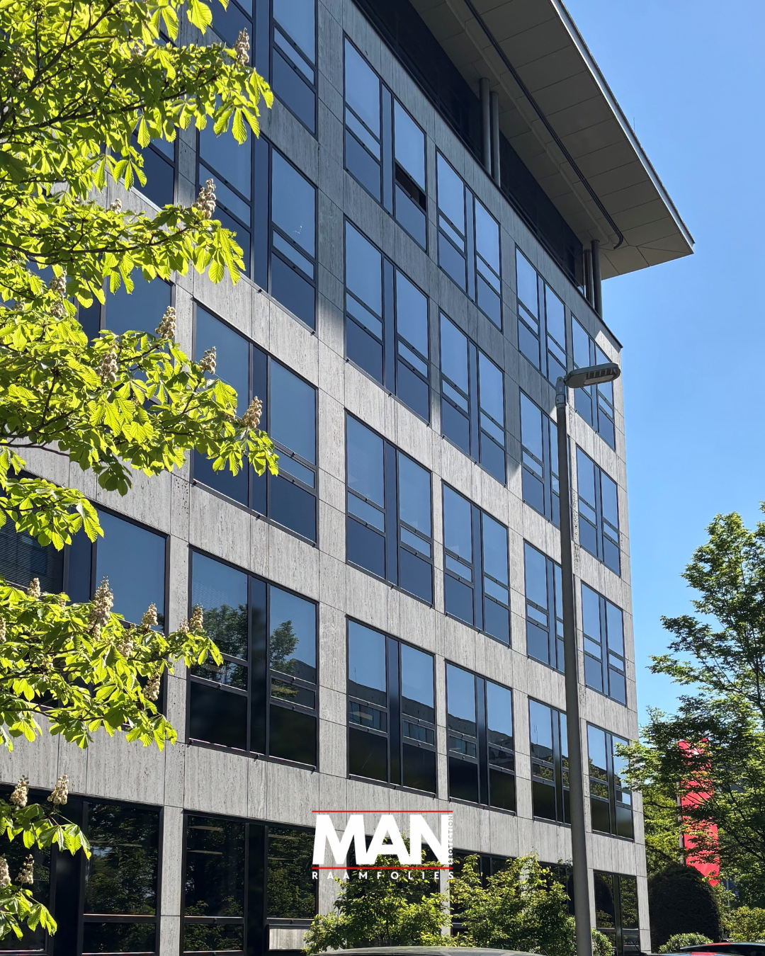 Bij een groot kantoorpand in Hilversum hebben wij twee gevelzijden voorzien van zwarte vinylfolie.