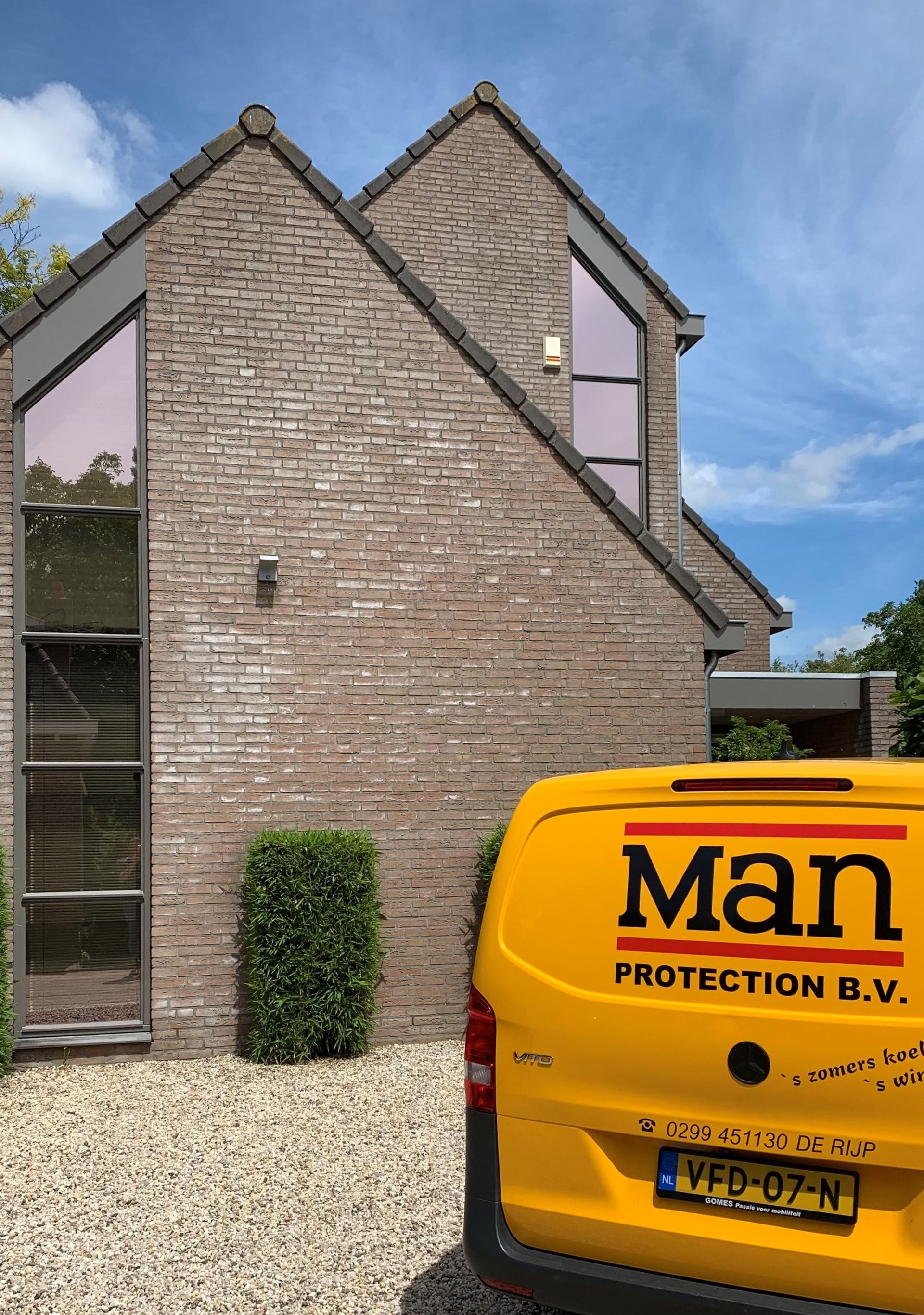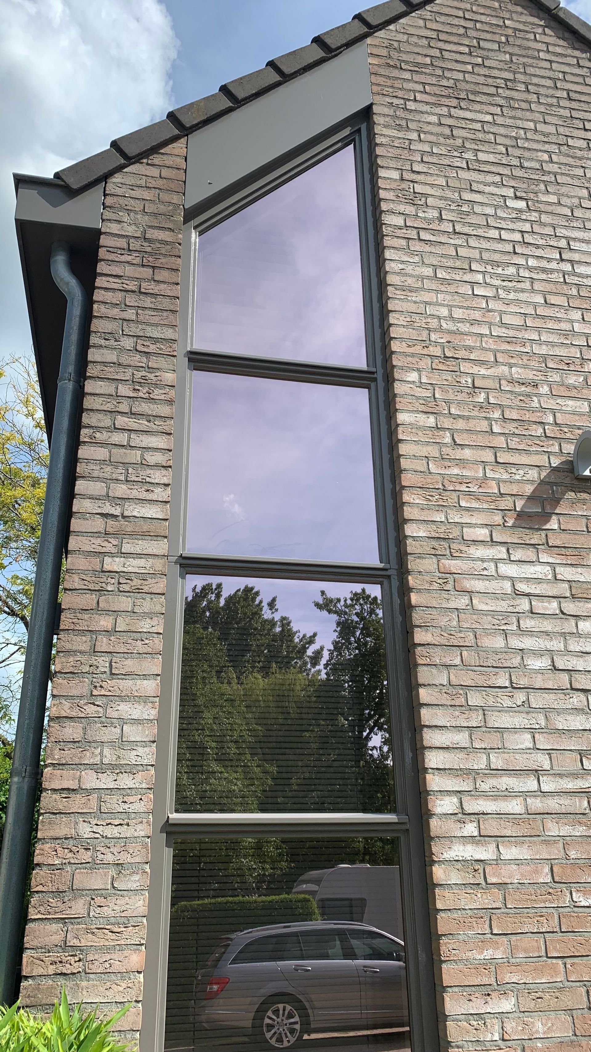 Bij een particuliere woning te Den Bosch hebben wij de glazen ruiten aan de buitenzijde voorzien van een bronskleurige warmtewerende glasfolie.